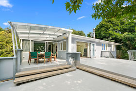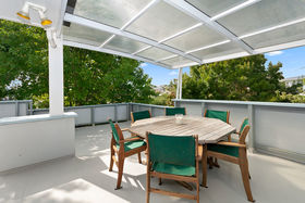 The elevated decking is partially covered for year round entertaining, and is both sunny and private.