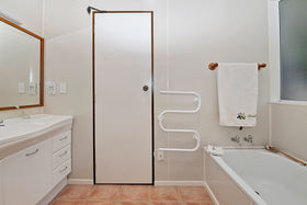 To the right side of the entrance hall, are the sleeping quarters, master bathroom and laundry. Two well appointed bedrooms both have fitted wardrobes, the master bedroom also has access to the bathroom as an en-suite. The bathroom has both shower and bath, plus a separate toilet, and laundry has access to the deck making everyday life a breeze.