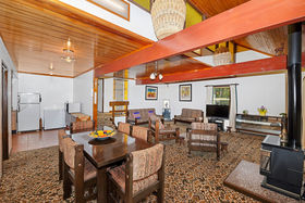 Citrus trees greet you before arriving in the entrance hall. Step down to the left to a more than generous lounge and dining room. High ceilings, double ranch-sliders to the deck and inventive sky-lights create architectural lines, and the ultimate space to create your dream living area. This is sure to be the hub of the home, leading to a large kitchen guest bedroom and office. A little paint and a touch of imagination will see the living quarters the centre of family functions for many years. Ranch sliders lead onto the wrap around deck from the lounge, office and guest bedroom, allowing for year round freedom.