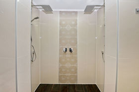 Three well appointed bedrooms all have internal wardrobes and ranch sliders onto the wrap around deck. The bathroom is a real show-stopper. Tiled from floor to ceiling, it has his and her showers, sinks and a space age spa bath to soothe the body and mind.