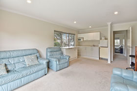This premium property has been designed to ensure your every comfort. The main dwelling is a beautiful, 4 year old, 4 double bedroom home with double glazing and ducted heating and cooling throughout. The beautiful well-appointed kitchen overlooks a maintenance free entertainers dream back yard with its own putting green for the keen golfer to practice or family fun, with realistic artificial turf, so you won't need a lawn mower ! The open plan living is large and spacious and all the bedrooms are a good size double. The master bedroom has an ensuite and there is a good size family bathroom and separate toilet. At the end of the hallway is a great surprise. A fully self-contained wing that can be closed off from the main dwelling. This area is perfect if you have elderly parents that you want close by. There is an open plan living area and kitchenette, the 3rd bathroom with shower toilet and vanity and a double bedroom ( making 5 bedrooms and 3 bathrooms in all) This sunny living, area opens out to the entertaining area and can be accessed without entering through the main house front door. The basement area is also full of surprises. This area can accommodate 2 vehicles comfortably all carpeted, plus a good size media or rumpus room with its own heat pump. There is excellent parking and the home is beautifully landscaped for low maintenance and privacy. Situated a couple of minutes' drive to on ramp, motorway heading north.