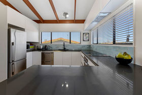 Laminate wood flooring add to the contemporary feel while the lounge is cosy and intimate, the dining opulent and the kitchen quite simply a triumph. No expense has been spared here, from the engineered stone benchtops with breakfast bar, and soft close cabinetry onto the top quality appliances and induction cooktop. An equiste kitchen for the chef of the house, to let the creative juices flow.